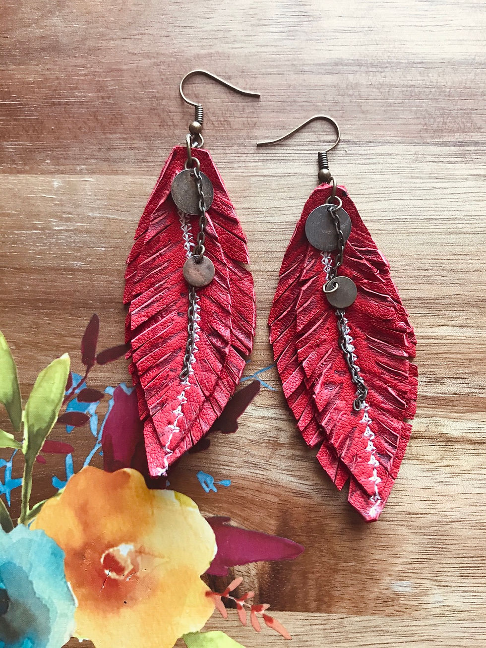 Fancy Floral ๐ธ Layered Leather Feather Earrings